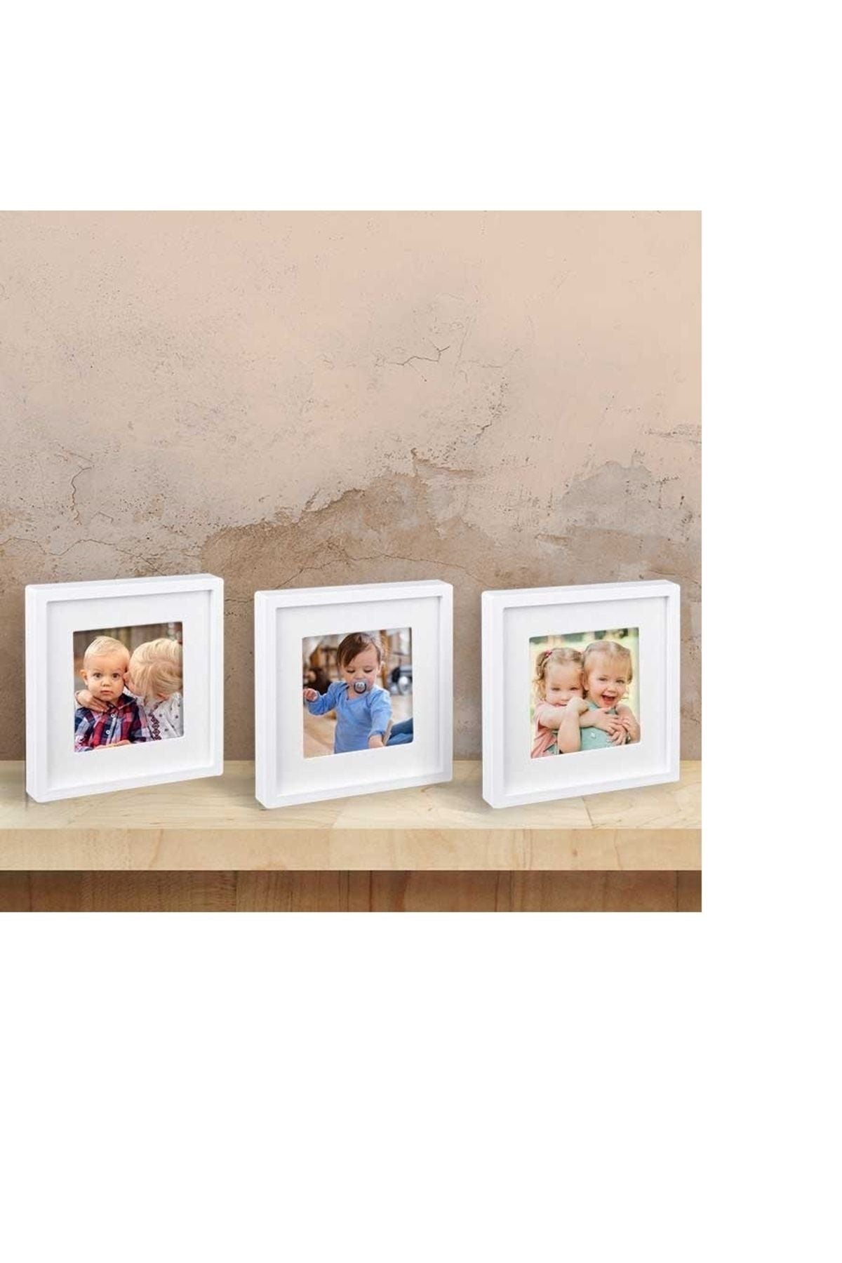 Yapışkan Bantlı Paspartulu Sök Tak Kare Kare Çerçeve 14cm 3'lü Beyaz