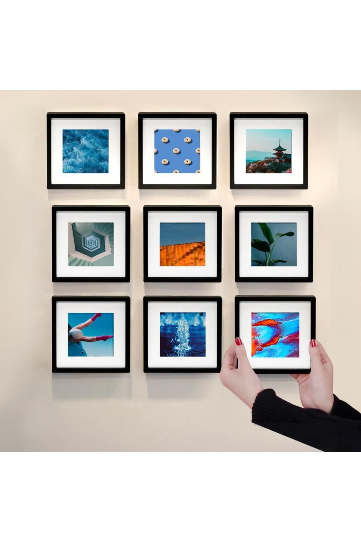 Yapışkanlı Sök-Tak Paspartulu Siyah14x14cm POLA Kare Fotoğraf Çerçevesi - 9'lu Paket